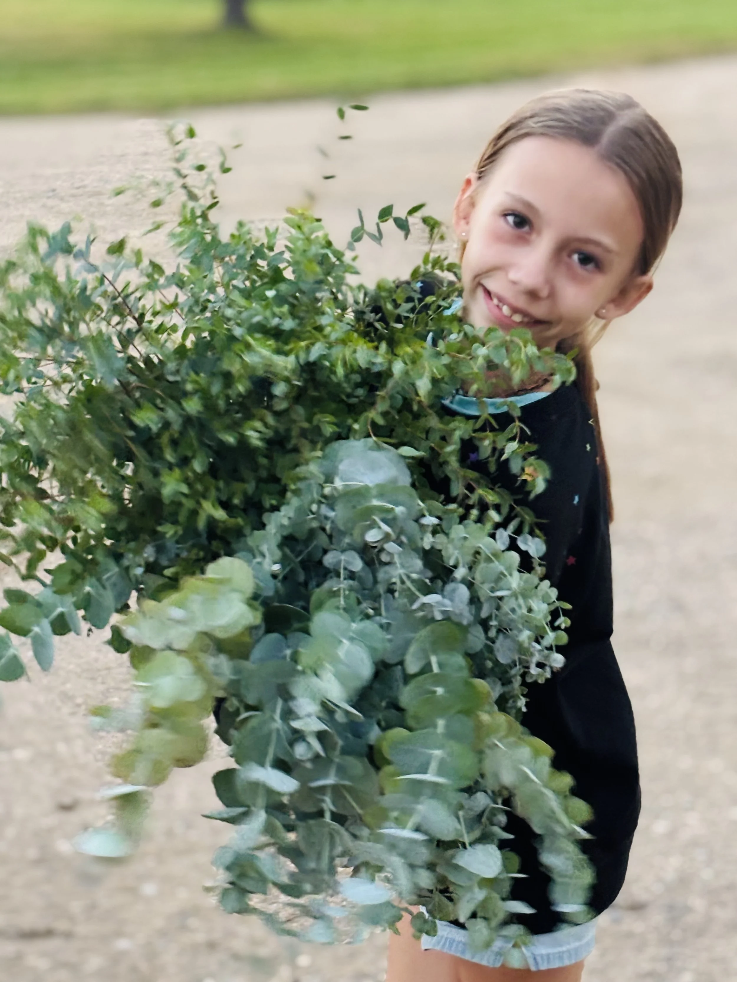 We’ve got our focal flowers and our fillers, but greenery is what ties the whole bouquet together. It’s what makes a bouquet look full and finished instead of kind of… whimpy. It fills in the gaps, softens everything, and makes it look like you knew exactly what you were doing (even if you were just out there cutting whatever looked good).